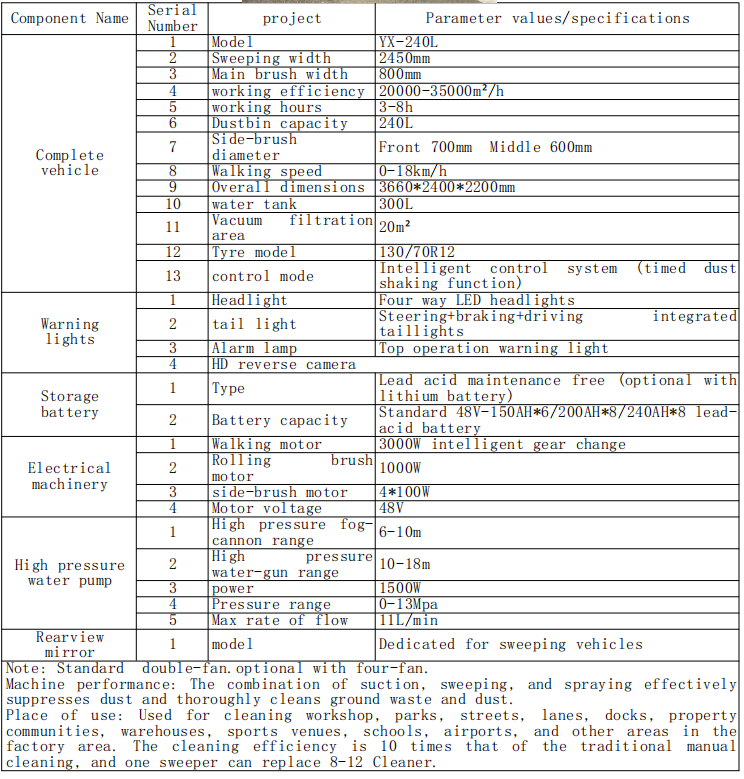 Kraj uporabe: Uporablja se za čiščenje delavnice, parkov, ulic, stez, dokov, nepremičnin, skladišč, športnih prizorišč, šol, letališč in drugih območij na območju Factory. Učinkovitost čiščenja je 10-krat večja od tradicionalnega ročnega zapisovanja, en pometalnik pa lahko nadomesti 8-12 čistilca.